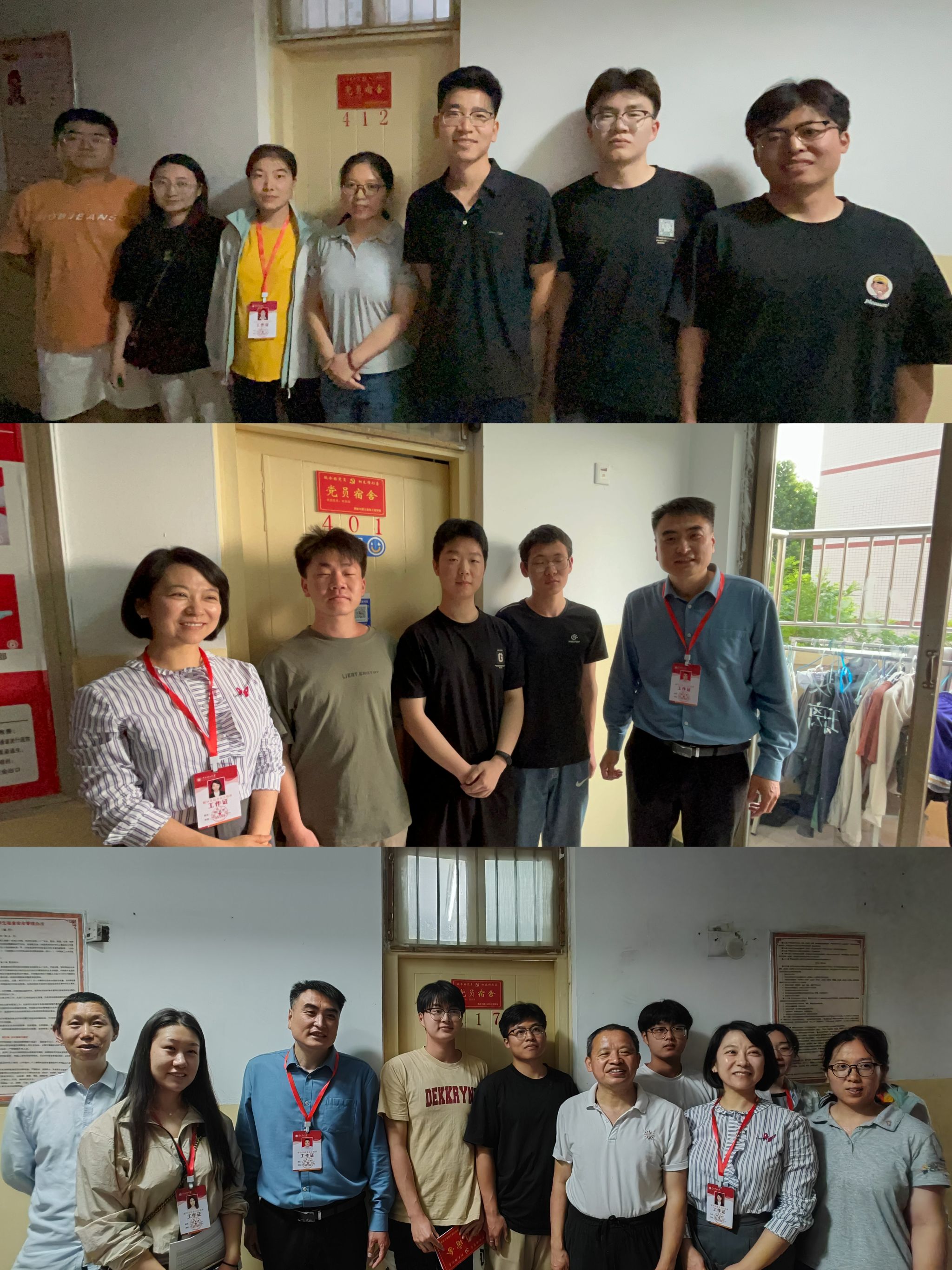 59日下午,91吃瓜 党委副书记郭学鹏带领91吃瓜 全体辅导员及学业导师代表深入学生宿舍,与学生党员、宿舍成员们就学习、生活、考研、就业等情况进行亲切交流。郭书记强调,“党员宿舍”不仅是荣誉,更是激励。学生党员要始终牢记自己的身份和责任,从学习到工作,从宿舍到班级,以点带面,充分发挥模范带头作用,推进优良院风、学风建设,真正实现“‘寓’红心,‘宿’雅室”的目标。老师们表示,希望学生党员全面提升自身党员素养,亮身份、树形象、做表率,激励大家向优秀学生党员看齐,营造积极向上的宿舍文化氛围。随后,郭书记与辅导员及学业导师为2021级党员宿舍挂牌,并与宿舍成员合影留念。