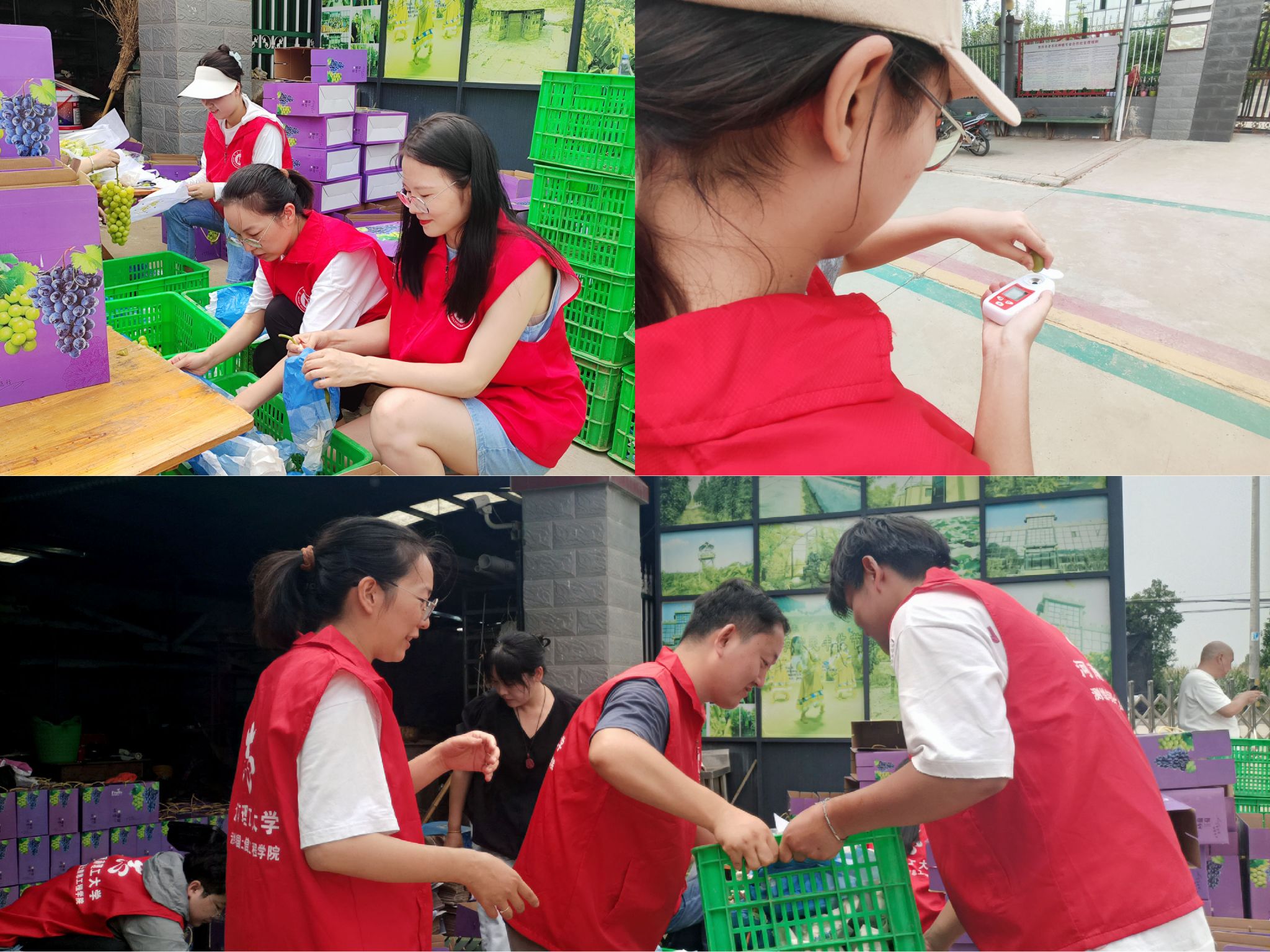 抵达合作社后,志愿者们在农业技术人员的悉心指导下,迅速掌握了葡萄分拣、套袋保护及装箱运输等关键环节的高效操作方法。劳动现场,一幕幕团结协作、默契无间的场景令人动容。志愿者们根据各自专长精细分工,形成了一个高效运转的“爱心流水线”。从精挑细选每一串晶莹剔透的葡萄,到细心为它们穿上防虫害的“外衣”,再到迅速而精准地完成装箱封箱,每一个环节都凝聚着他们的辛勤汗水与智慧结晶。此外,志愿者们依托自身扎实的专业知识,对即将上市的葡萄进行了全面而严格的品质检测,有效提升了合作社产品的整体质量,为增强当地农产品的市场竞争力注入了新的活力。