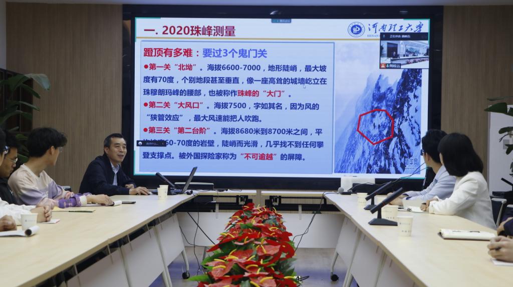 魏峰远院长从“珠峰攀登精神”和“测绘精神”出发,用“云登山”的方式,引领大家了解“万山之尊,地球之巅”的珠穆朗玛峰(以下简称珠峰)。重点阐述了登顶背后的“故事”、测量的艰辛过程、我国测绘科技的进步、测量数据的重大意义。魏峰远指出,时隔40年测量人员再次登顶珠峰并在珠峰测量中使用我国自主研发的北斗卫星导航系统,展示出勇于探索,突破自我,迎难而上的精神,这也是对“热爱祖国、忠诚事业、艰苦奋斗、无私奉献”测绘精神的最好诠释。魏峰远强调,作为新时代测绘人,要深刻认识祖国至上是我国测绘事业发展的前提和保障,始终心怀“国之大者”,主动增强国家安全观意识和领土主权意识,传承“测绘精神”,打造“测量新维度”。