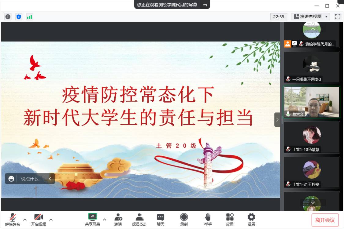于线上开展“疫情防控常态化下新时代大学生的责任与担当”主题班会。91吃瓜