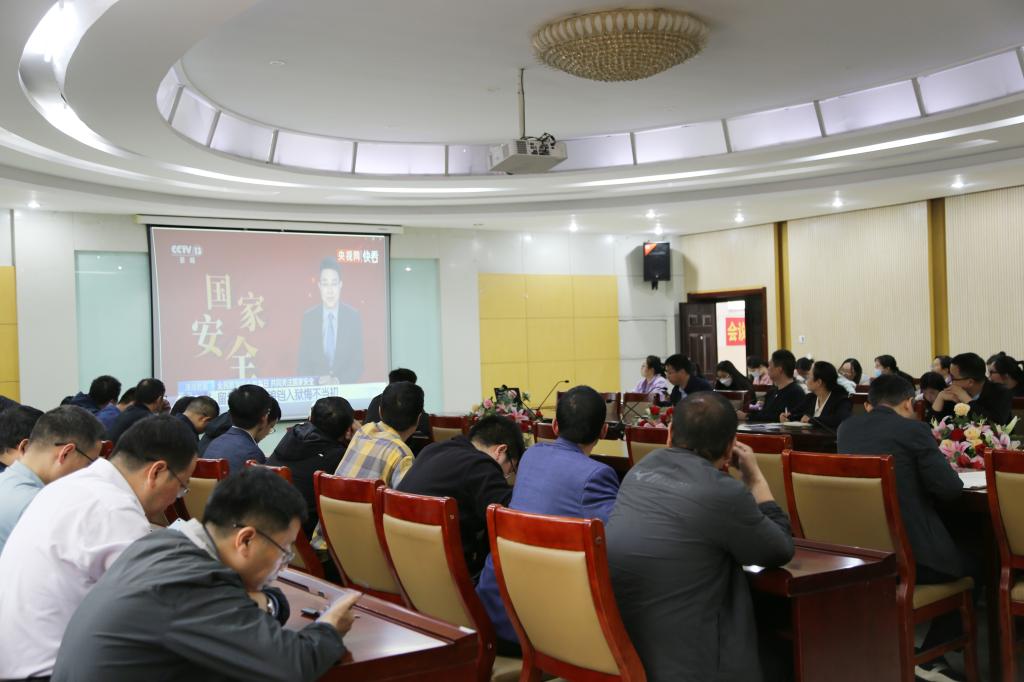 在一楼会议室组织全体教职工集中观看学习法治宣传教育视频。