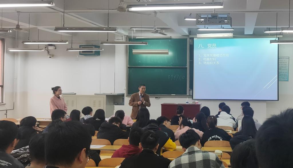 401教室开展2023届本科毕业班专题教育工作会议。毕业班专职辅导员胡佰林和杨笑冰主持会议。