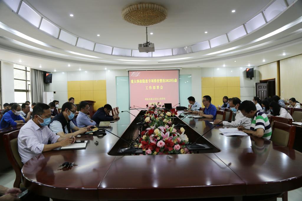 组织全体教职工在101会议室召开“重大事故隐患专项排查整治 2023 行动”工作部署会。会议由院长袁占良主持。