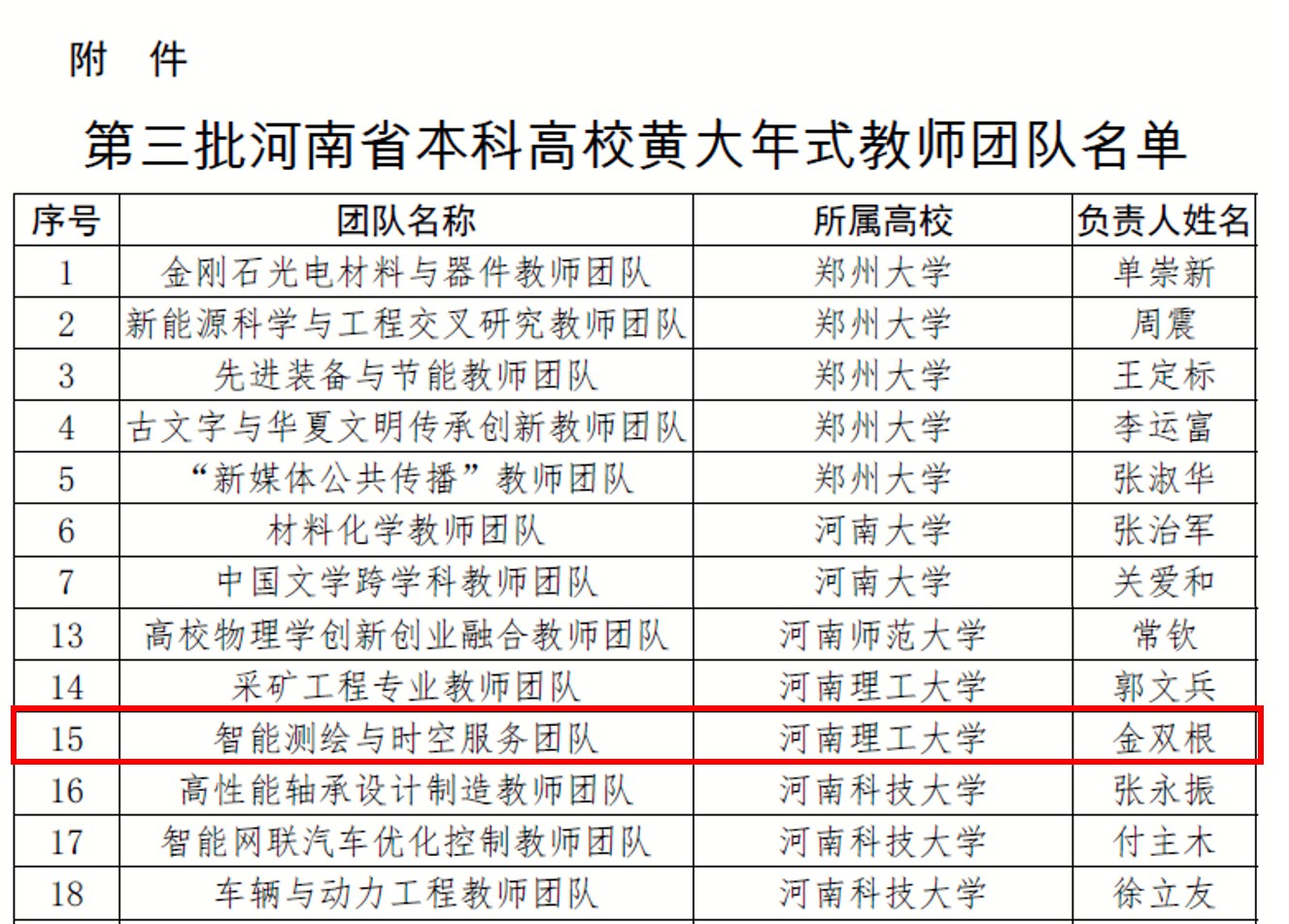 智能测绘与时空服务团队(团队负责人:金双根)获评第三批“河南省本科高校黄大年式教师团队”。
