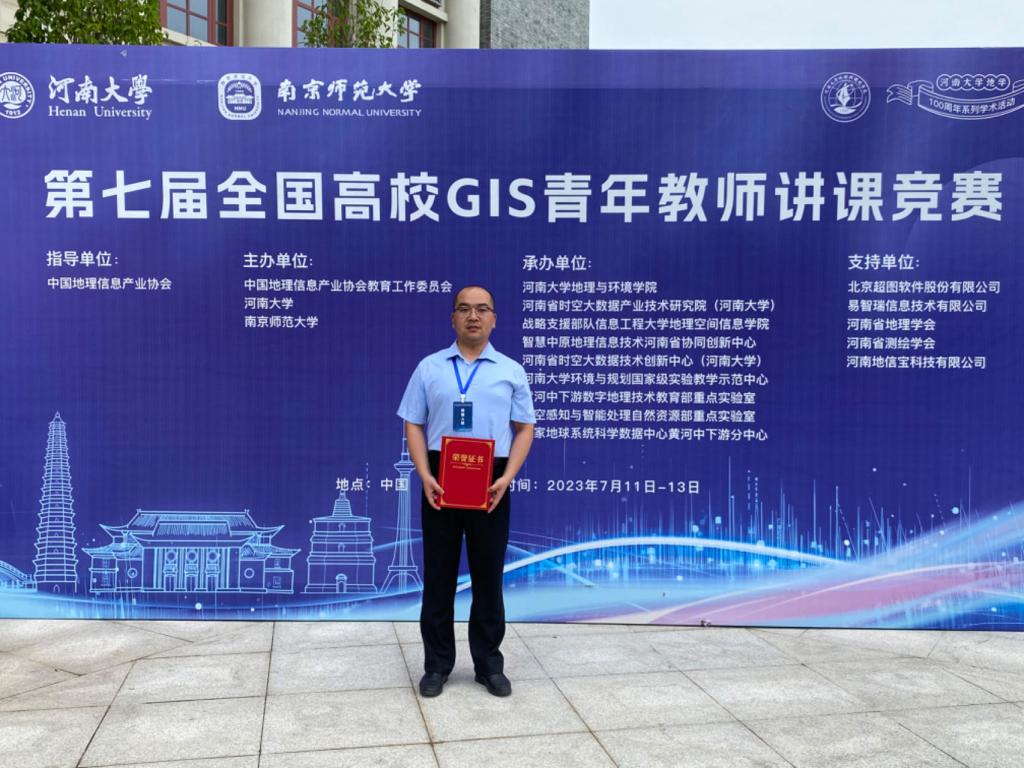 7月11-13日,第七届全国高校GIS青年教师讲课竞赛在河南大学(郑州校区)举办,91吃瓜地理信息科学系何湜老师以其生动的讲授、精美的课件和创新的思维脱颖而出,荣获一等奖。