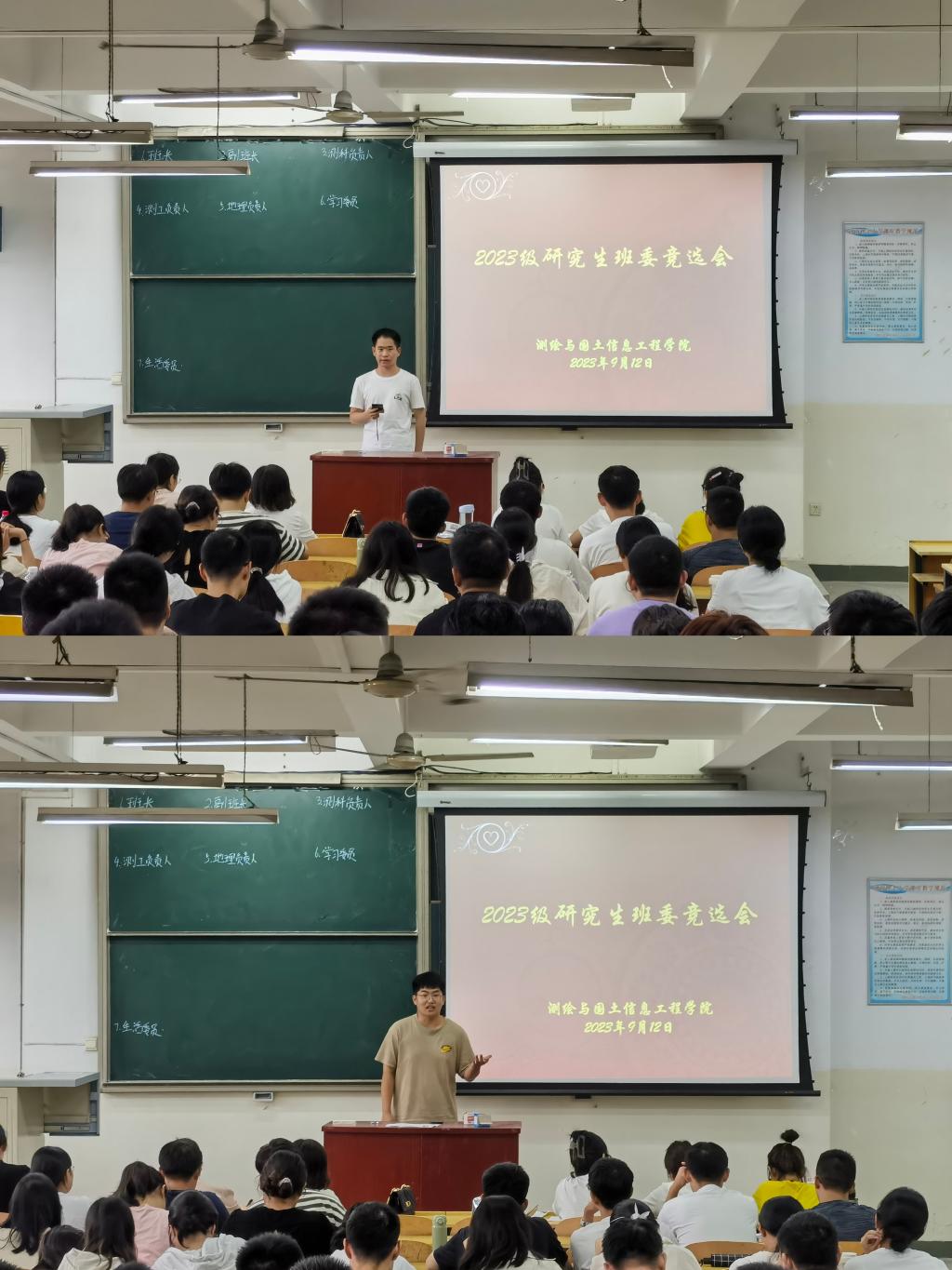 于9月12日下午举行了2023级研究生班委竞选大会。2023级全体研究生参加会议,研管办主任谢玉娟,辅导员老师范梦瑶、杨永菊参加会议并担任评委。研究生辅导员范梦瑶主持会议。