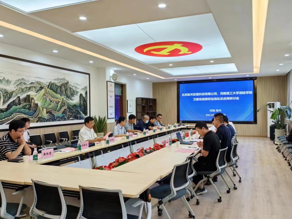 在人才培养、科学研究以及“双一流”学科创建方面取得的成绩,特别强调了“河南理工一号”卫星发射成功后,建立卫星地面接收站的重要性。北京航天驭星科技有限公司总经理徐岩针对学校需求,详细介绍了卫星地面接收站的基建工艺和选址要求。双方与会人员就卫星地面接收站的相关事宜进行了深入讨论和交流。会议结束后,双方参会人员对地面接收站选址进行了实地考察。