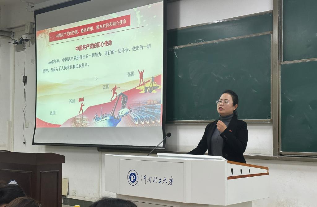 党委书记张红霞主讲,党委副书记郭学鹏、组织员李晶晶、学工办主任丰习才和265名入党积极分子参加。