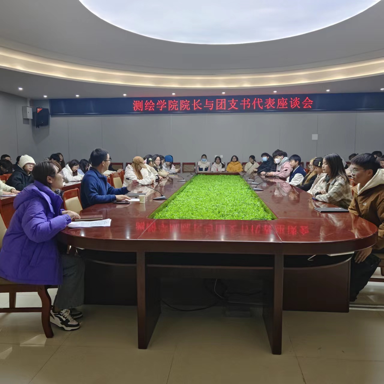在院楼101召开院长与团支书代表座谈会,参加本次座谈会的有院长袁占良及大一至大四团支书代表共计80余人。