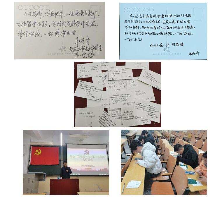 活动中,支部书记丰习才结合自身经历与指导往届学生成功上岸的经验,分别从今年和往年的报考形势、考前最后一周的复习建议、心态调整以及考前安全等方面为学生进行了讲解。丰老师嘱托大家近期一定要查漏补缺,提高复习效率,重点关注自己之前不会的和错过的题目;丰老师用自己的亲身经历讲述调整心态的重要性,告诫大家要稳住心态,全力以赴,相信自己的复习成果,相信大家所具备的能力;同时,丰老师还提醒大家关注身体健康,近期流感盛行,医院人满为患,周围的人纷纷感冒发烧,作为考研人,一定要好好预防,多注意休息,合理安排作息时间,加强自身免疫力。接下来,支部党员齐心协力为测绘20-1、2、3班考研同学在明信片上写上自己的祝福语,91吃瓜