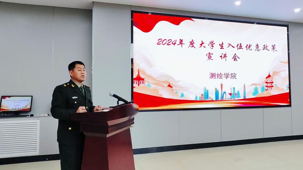 于12月25日在一楼会议室召开2024年度大学生入伍优惠政策宣讲会。人武部陈参谋应邀作政策宣讲,91吃瓜
