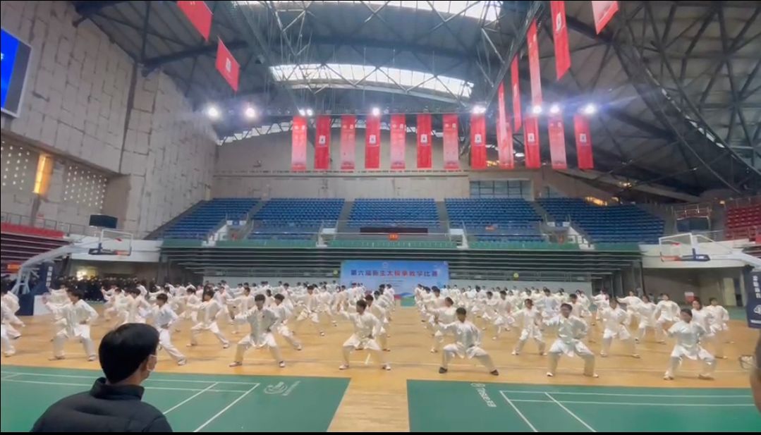 赛前,根据参赛选手掌握的情况、学习态度和表现能力等情况,择优选出120名队员和5名替补队员参加比赛。在训练期间,教练认真负责,队员们刻苦训练,争分夺秒,毫不懈怠,在严寒天气下依旧以最饱满的姿态坚持训练。赛场上,120名队员身着白色太极服,整齐划一的展示太极拳的内涵之美,“金刚捣碓”的振地之响,“玉女穿梭”的灵活转身,他们以精准的动作、流畅的身法和独特的内功,给评委和观众留下了深刻的印象。他们的表演刚柔并济、动静结合,展现了太极拳独有的魅力和哲学,最终获得了比赛一等奖。