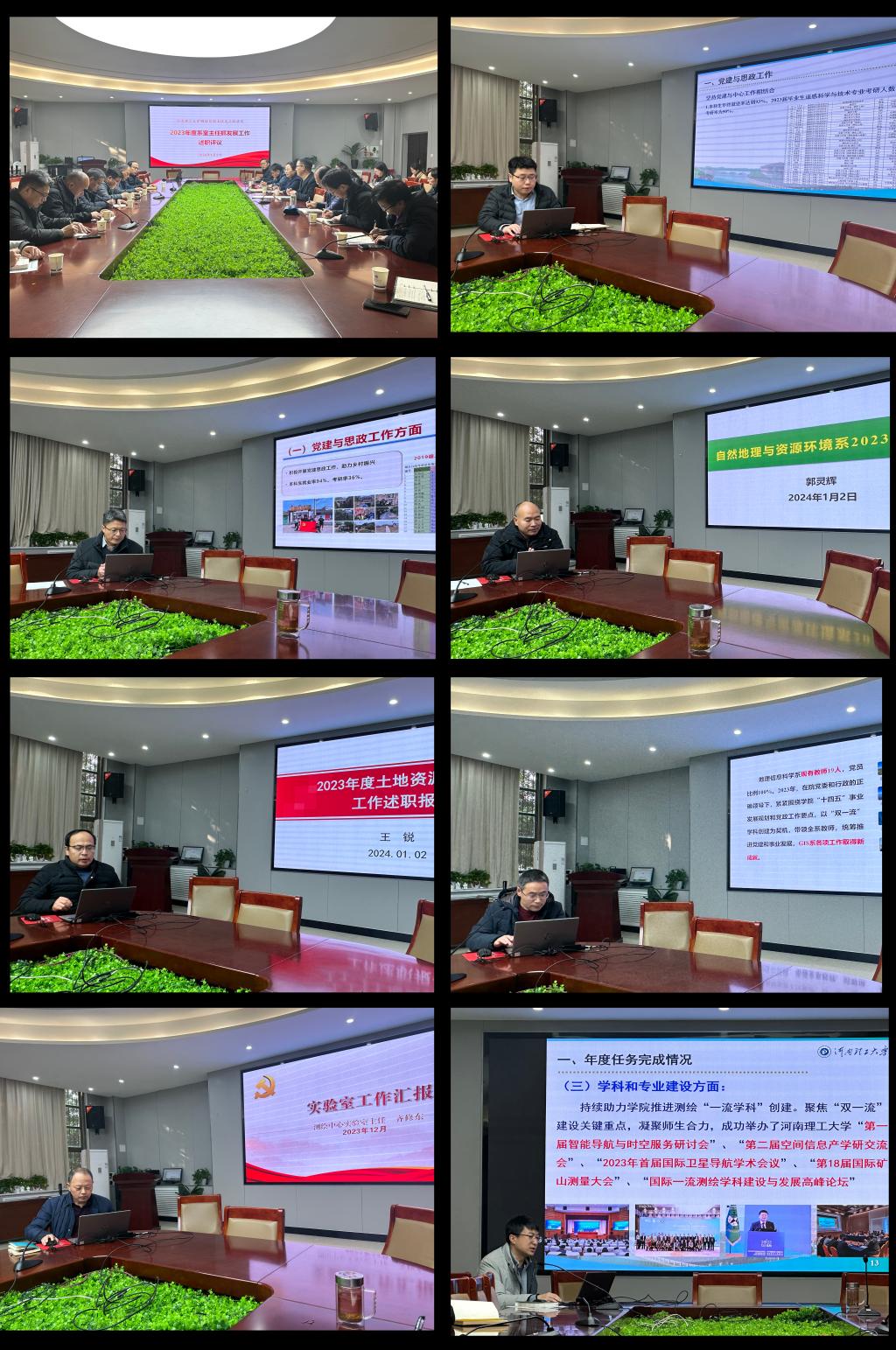 测绘工程系等7位系室主任分别从2023年度任务完成情况、存在问题以及下一步工作打算等方面进行汇报,全面梳理总结取得成效,反思分析当前存在的问题与不足,并提出2024年系室及专业建设的思路和设想。