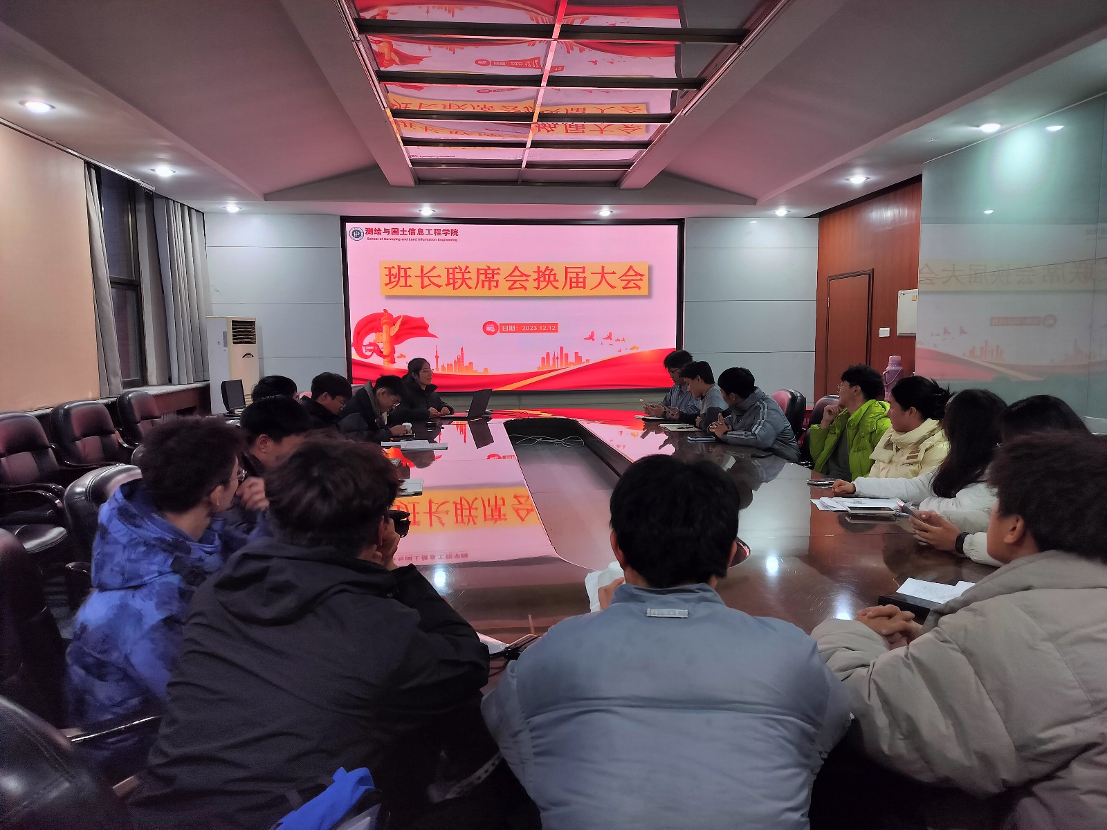 在院三楼会议室召开2023年班长联席会换届大会。辅导员拓海燕、班长联席会主席刘海健和班长联席会委员参加本次会议,会议由马寒雨主持。