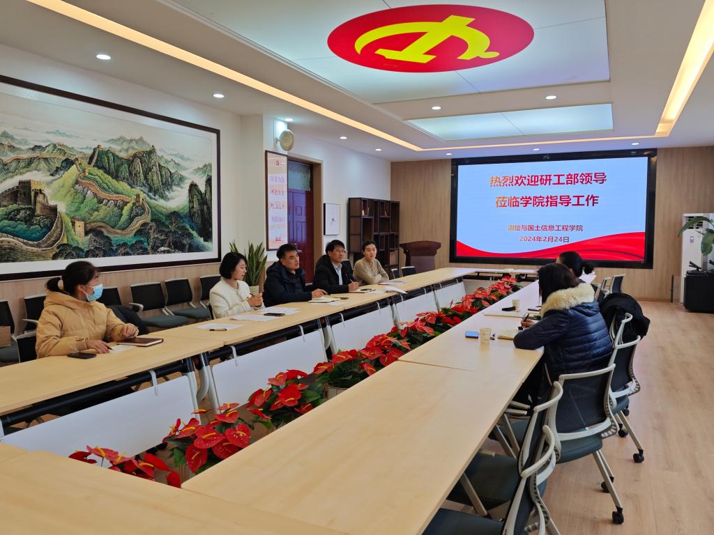 为加强学工队伍建设,进一步改进学生工作管理和服务水平,2月25日下午,研工部部长平瑞、思想教育课科长薛昊来91吃瓜进行学生工作专项调研,91吃瓜党委副书记郭学鹏及部分辅导员参加调研会议。