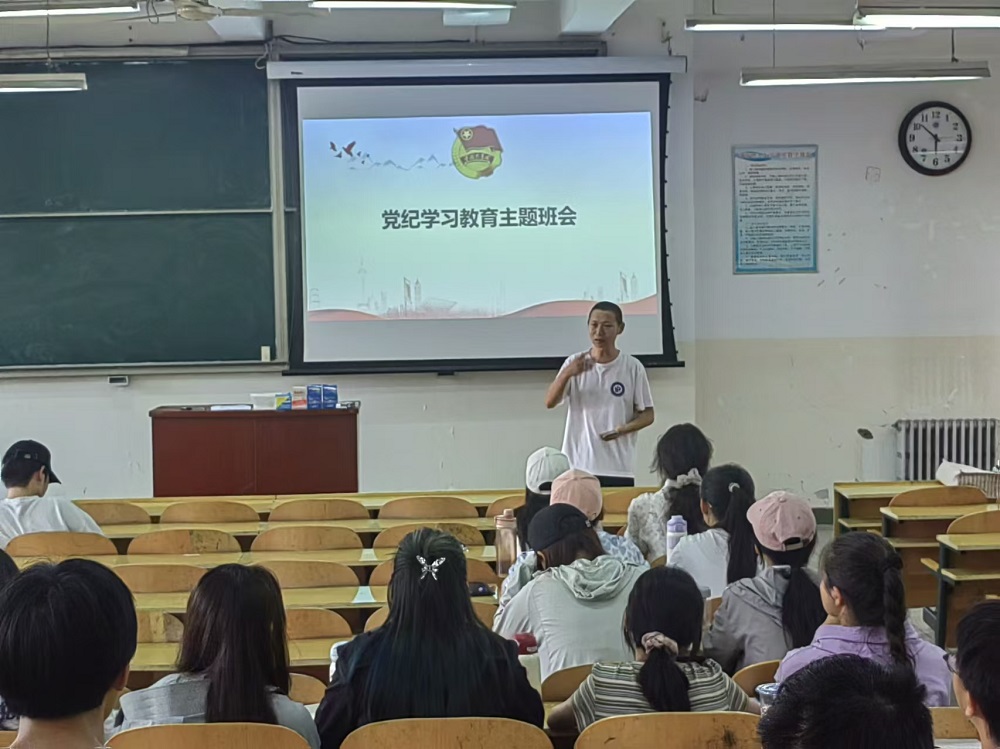 主题班会学习了《中国共产党章程》、《中国共产党廉洁自律准则》,特别是新修订的《中国共产党纪律处分条例》等内容,通过逐章逐条逐字学,通读精读研读《条例》全文,准确理解把握《条例》的主旨要义,做到熟知党规党纪,并对照《条例》积极反思自身存在的薄弱点、风险点,做到警醒、知止,自觉用纪律校正思想和行动。同时班会重点强调,大学生党员要在学习生活中发挥先锋模范作用,率先垂范,积极践行和维护党内各项纪律,切实将学习效果内化为纪律执行力,积极为营造安全、文明、和谐校园做贡献。