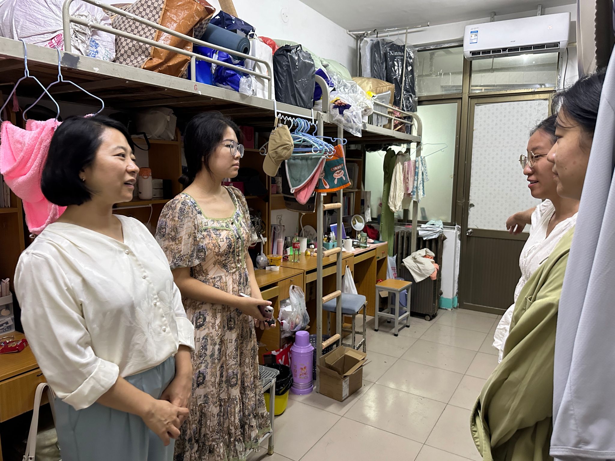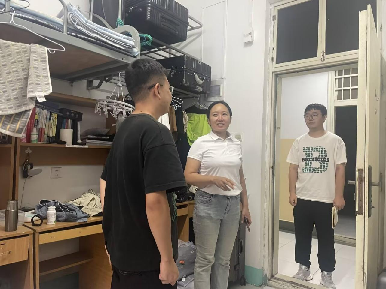 党委副书记王雷霞、辅导员拓海燕、范梦瑶、刘赛思、赵春强分别对研究生男生、女生宿舍进行走访慰问。