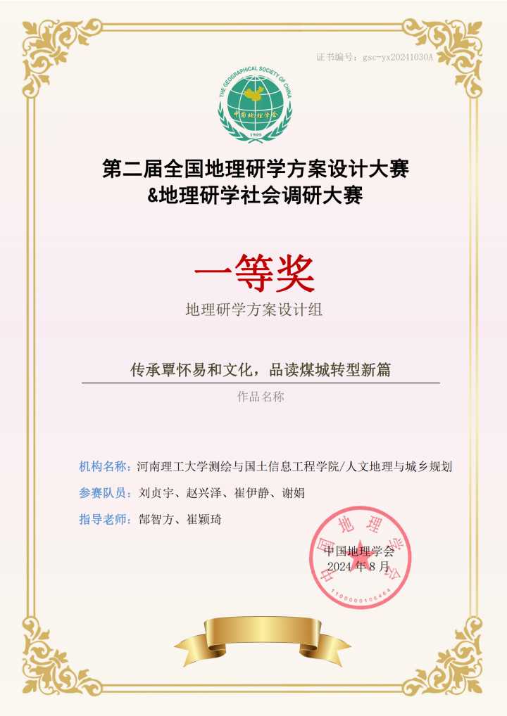 在人文地理组赛道,在郜智方、崔颖琪两位老师的指导下,由刘贞宇、赵兴泽、崔伊静、谢娟完成的《传承覃怀易和文化,品读煤城转型新篇》获得地理研学方案设计组一等奖;由常春勤、陈小素两位老师指导,袁欣欣、李俊霞、雷丁、高衡完成的《丝路·茶道·运河——探三脉交汇古韵,研洛阳传承新篇》获得地理研学方案设计组二等奖;自然地理组赛道,由秦小静、乔卫芳两位老师指导,张旭东、王本闯、刘亿琛、包如意完成的《黄河安澜孕华北生态保护利千秋——沿黄河郑汴洛研学课程》获得地理研学方案设计组二等奖。这些作品深入挖掘了地域文化的独特地理与生态内涵,不仅展现了91吃瓜
