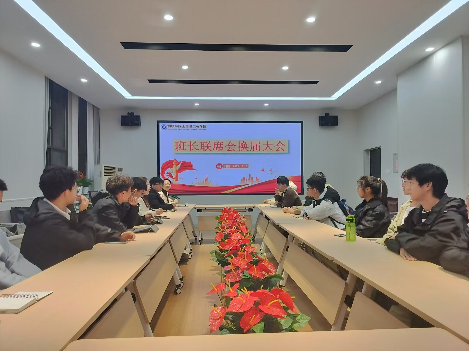 于院楼318会议室举行了2024年班长联席会换届大会。学工办副主任拓海燕、班长联席会主席闫文秀及班长联席会委员参与此次会议,会议由薛戈锐主持。