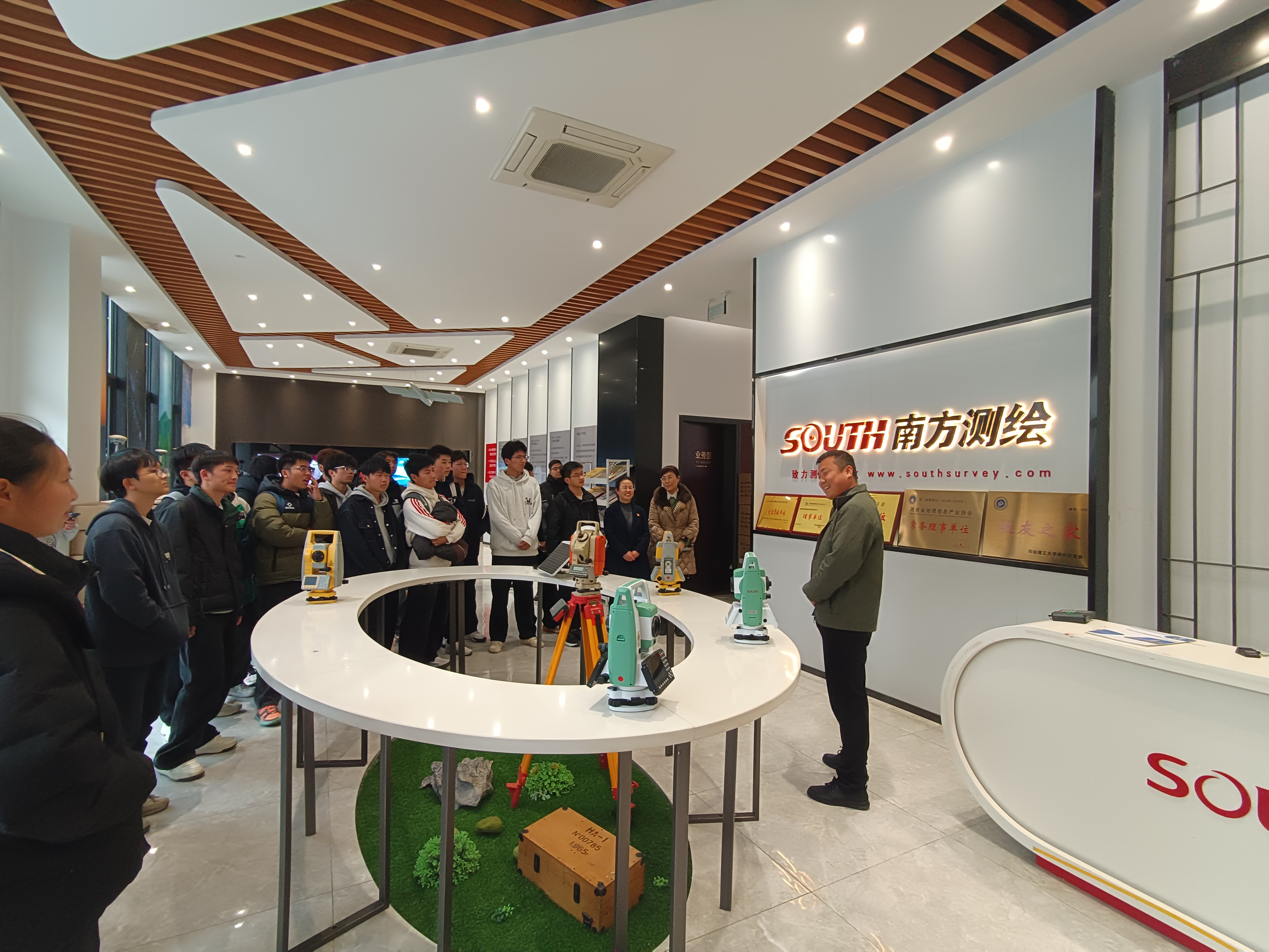 在企业展厅与研发车间,师生们紧随技术人员的脚步,先后观摩了北斗高精度定位、亚米级卫星影像实时处理、无人机三维建模、自然资源遥感监测等全流程演示。一张张灾后快速对比图、一组组夜光遥感经济活力数据,让“全球数字底座”的概念瞬间可感可知。企业专家现场拆解“样本标注—模型训练—知识图谱生成”技术闭环,使学生直观理解“数据、算法、算力”如何转化为治理效能,也为后续座谈研讨奠定了共同语境。