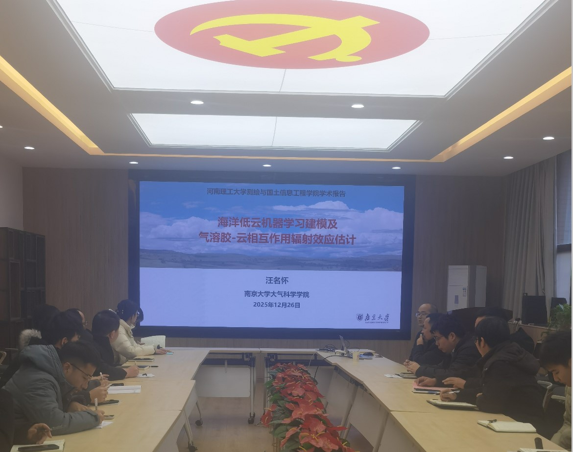 1226日上午,南京大学汪名怀教授受邀到AVbebe 进行学术交流,并在学院二楼会议室作“基海洋低云机器学习建模及气溶胶-云相互作用辐射效应估计”学术讲座。会议由学院副院长闫伟涛主持,遥感科学与技术系教师傅建春、都伟冰、杨磊库、蔡太义、李毅夫等及部分研究生参会。