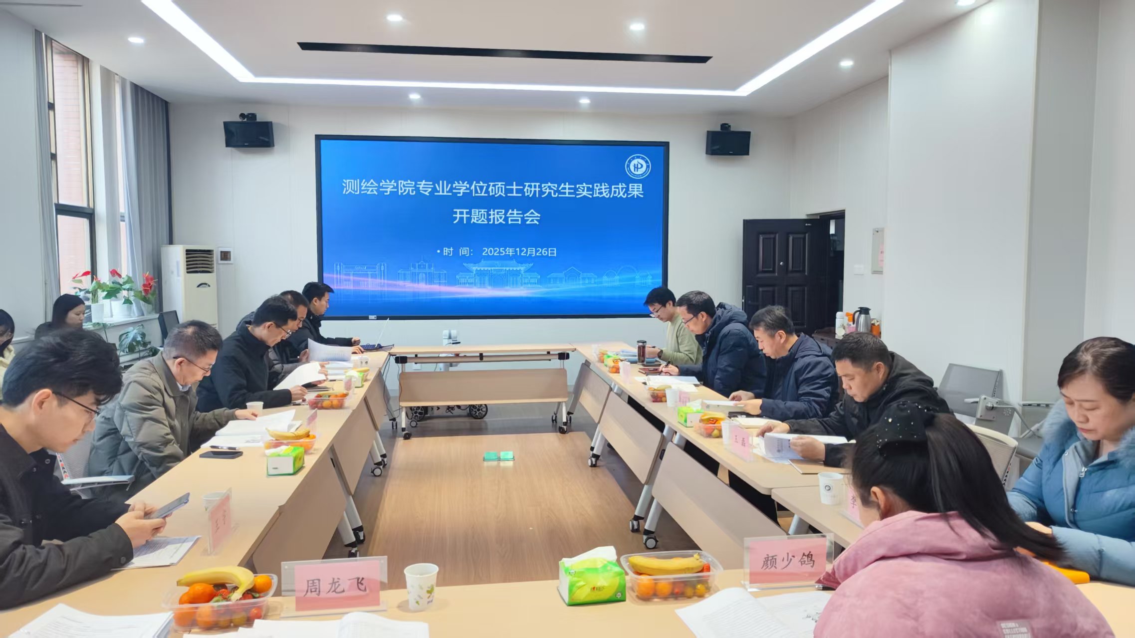 研究生靳佳辉围绕草莓图像识别、果梗几何定位、机械臂手眼标定、底盘导航及开发板集成控制展开汇报,系统阐述了项目技术路线、前期研究进展与后续工作安排。专家评议环节,校外行业专家从实践创新、市场导向、产品落地、经费保障等方面建言献策,校内专家从算法创新、机械结构设计、成果转化等方面提出完善意见。研究生靳佳辉及导师王宇感谢专家组提出的宝贵意见,表示将根据专家组意见进一步明确技术攻关方向,完善实践成果开题报告。