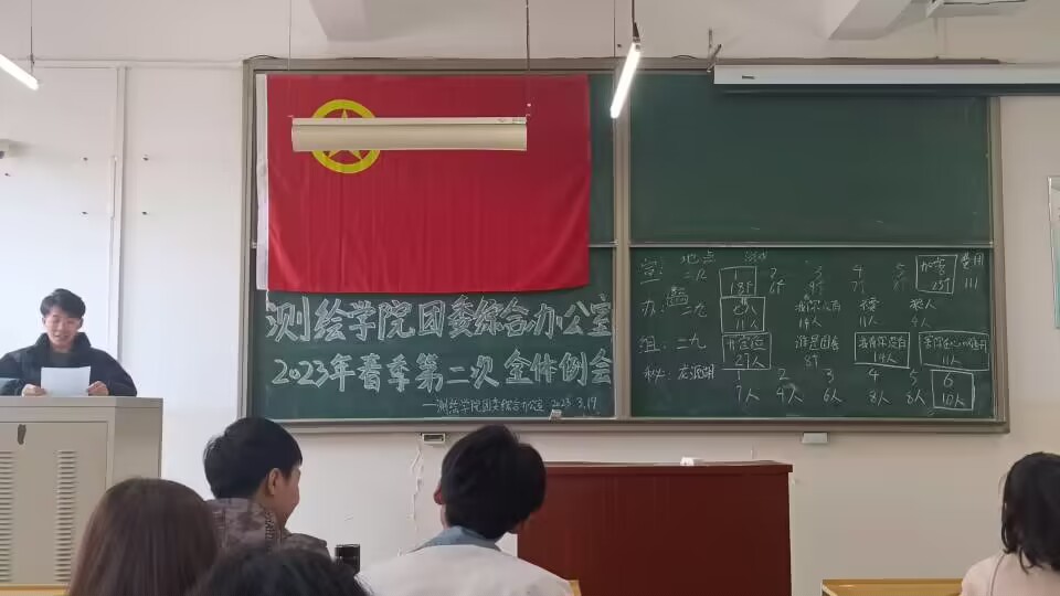 团委综合办公室2023年春季第二次全体例会在院楼302教室举行,会议由办公室王文烁主持,团委综合办公室全体成员参加会议。