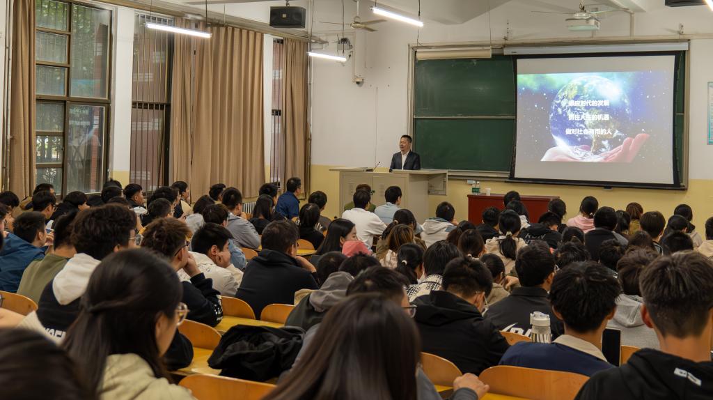 围绕“顺应时代的发展、抓住人生的机遇、做对社会有用的人”主题,王世敏以影响自己人生的三个小故事为切入点,讲述了自己如何从一个职场小白完成蜕变、抓住人生机遇,克服重重挑战,在一次又一次的经历中磨炼自己,最终一步步迈向成功。随后,王世敏介绍了中科川信科技有限公司发展的行业背景和发展前景,他表示,中科川信科技有限公司将以开拓卫星高精度导航定位多个应用领域,实现全领域服务为目标,继续为中国卫星导航与位置服务产业发展增砖添瓦。最后,王世敏鼓励同学们要立足社会需求、立足国家发展,抓住每个人生机遇,做真正对国家、对社会有用的人才。