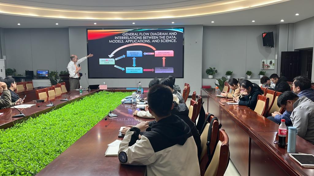 Andy教授首先对近期大家关注磁暴现象进行了解释,引起师生的广泛兴趣。此次报告通过探索磁层、热层和电离层之间的耦合过程,阐明这些相互连接的层如何响应太阳活动、地磁风暴和等离子体扰动,同时在本次报告中还介绍了前沿的观测技术、理论模型及其对地球的影响。